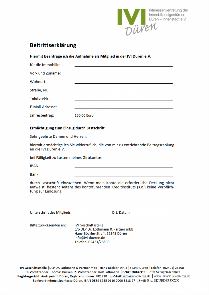 Unser Mitgliedsformular als PDF-Datei zum Herunterladen.
